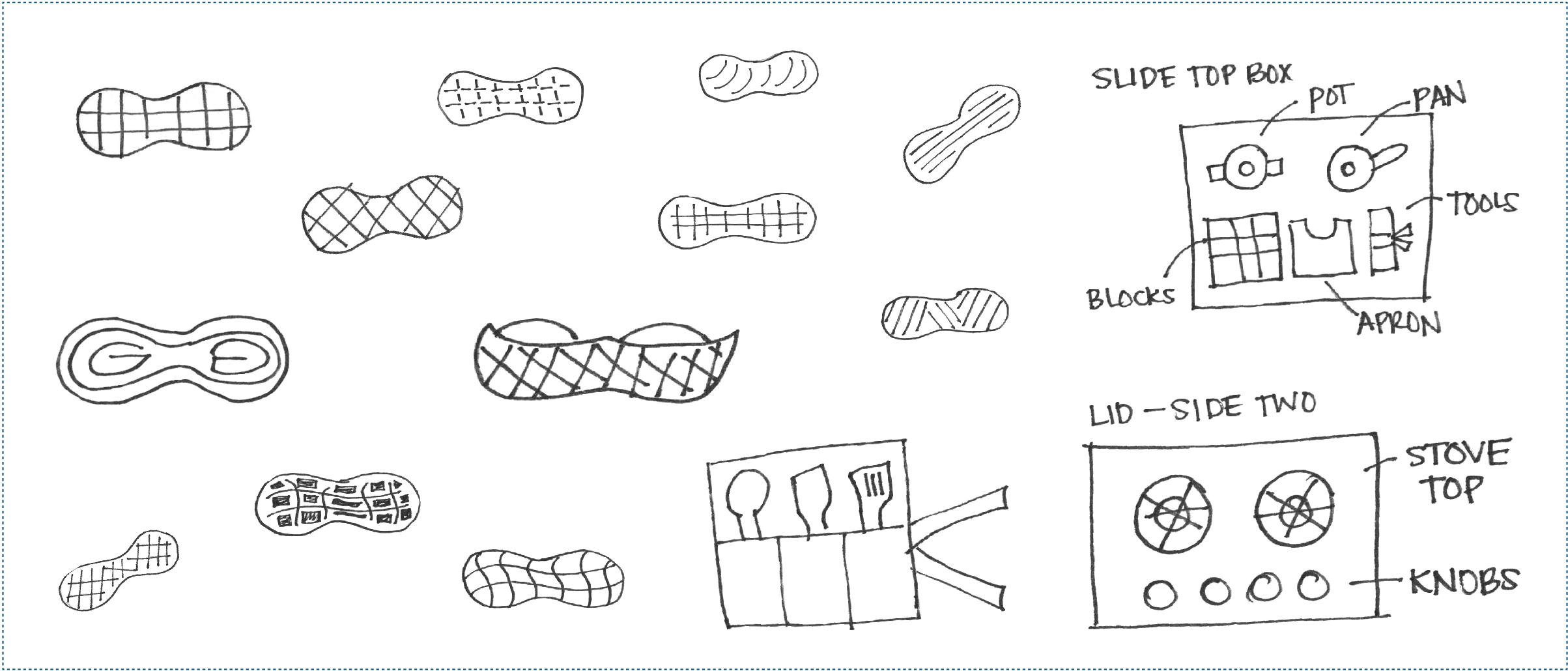 Research for the Little Peanuts Cooking Kit included reading medical studies, conducting a competitive analysis, and establishing a target market and target audience, including demographics, psychographics and geographics. Further research was conducted on children's learning milestones, early childhood education, and the importance of healthy eating and nutrition. Toy industry trends were also considered during the design process.