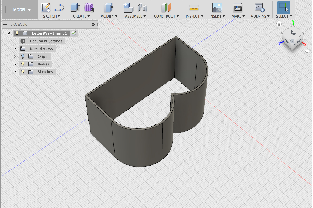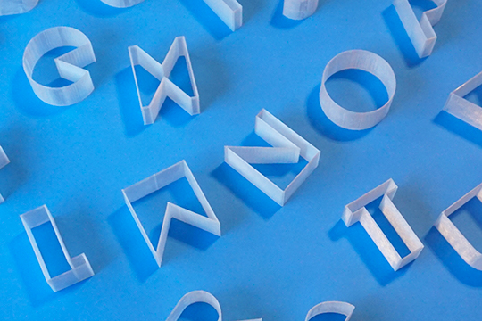 The geometric typeface HWT Mardell, created by P22 Type Foundry as part of the Hamilton Wood Type Museum's Wood Type Legacy Project, was 3-D printed to create a set of cookie cutters, resulting in a playful and delicious final product. The typeface was converted to three-dimensional objects using Fusion 360, Meshlab and Cura, and printed on an Ultimaker 3 3-D printer with clear PLA filament. Multiple prototypes were made to test the thickness, fill, and usability of the cookie cutters.