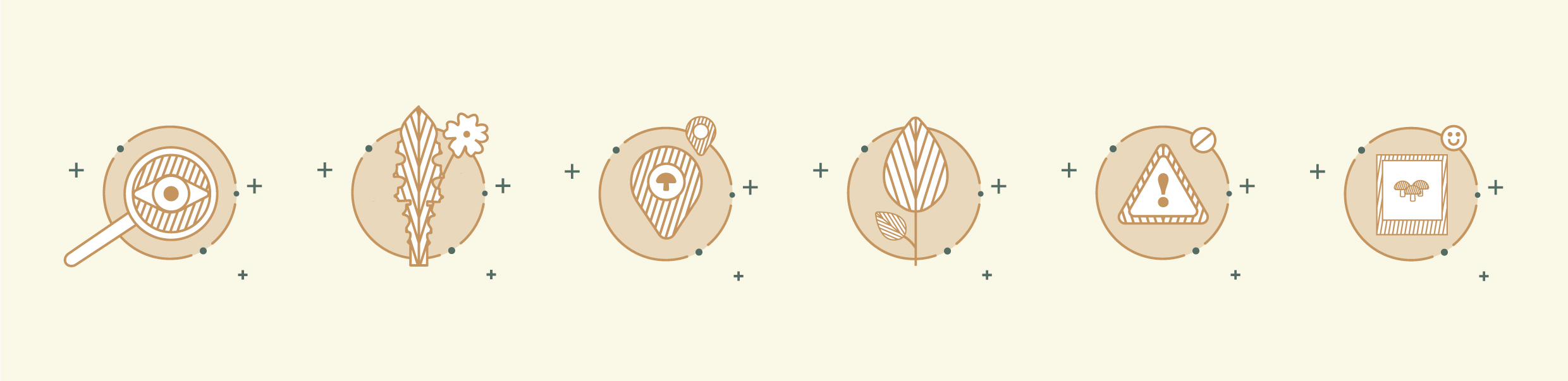 The Wild Foragers wordmark references foraging books from the 1970s yet remains in line with current typography trends. The typeface Bookmania Black, elegant and classic with cheerful glyphs, contrasts with the simple and straightforward lines of Avenir Medium, creating a brand that is trustworthy, adventurous, and down to earth. The onboarding iconography is playful and detailed, a welcome compliment to the brand's logo and overall tone.